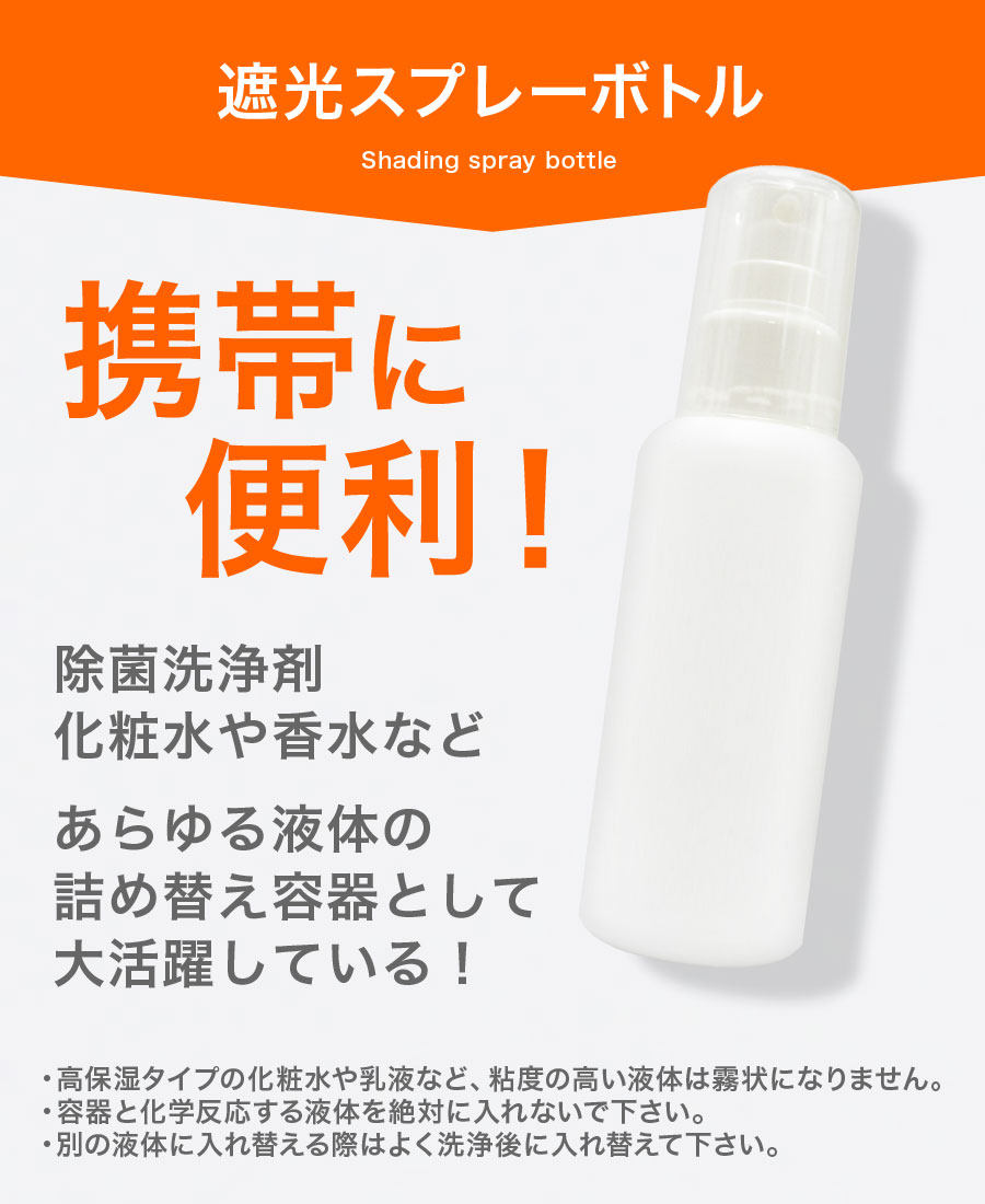 次亜塩素水、除菌用液体、洗剤、化粧水、など、あらゆる液体の 詰め替え容器として大活躍しております! 細かい霧タイプで、化粧水や植物の水やり、芳香剤などにもお使いになるお役様もいます! バッグの中に置いても漏れる心配がいらないので、外出用の除菌用液体などを入れるのにもおすすめです。