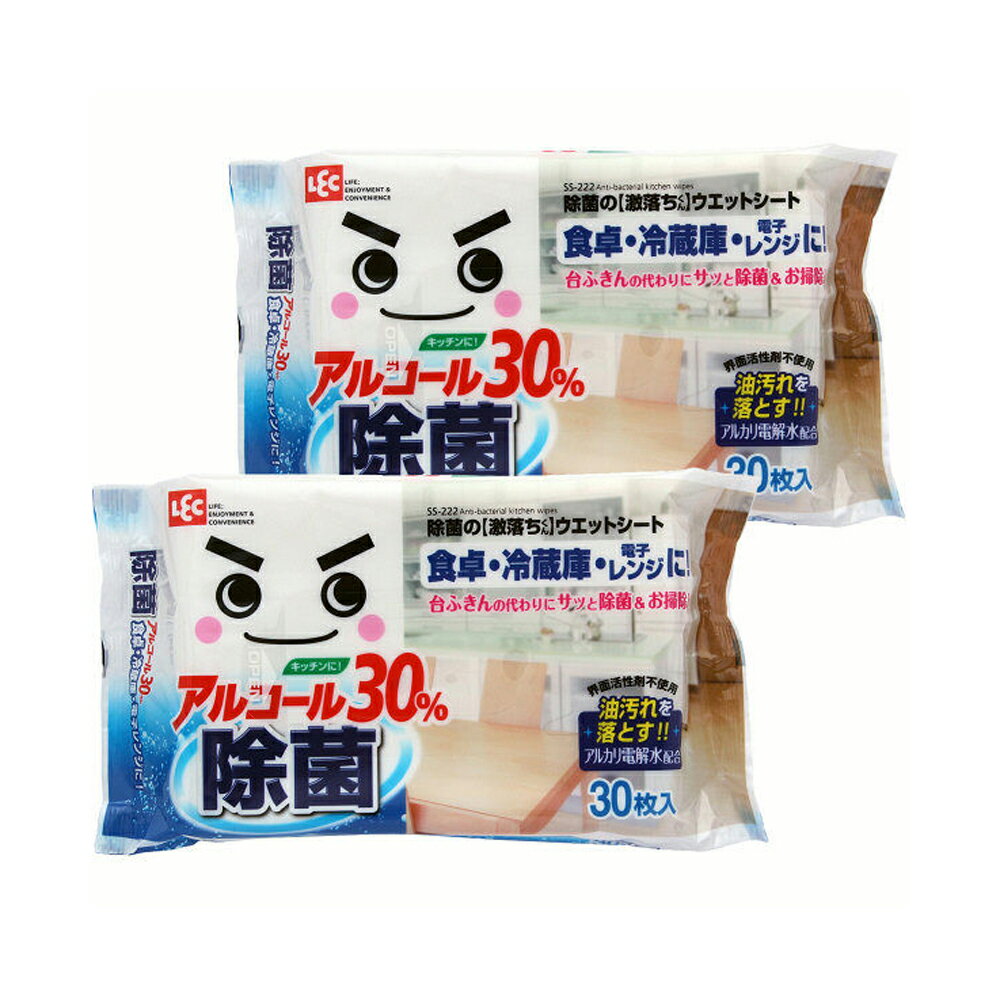【5/31までポイント2倍】除菌の激落ちくん ウェットシート 30枚入 レック SS-222 アルコール30% 除菌対策 キッチン 食卓 冷蔵庫 電子レンジ 油汚れに アルカリ電解水配合 洗剤を使いたくない場所にも 安心 安全 LEC 日本製 国産 通販 楽天