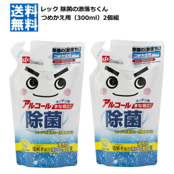 【4319】☆9【メール便送料無料】【お一人様1セット限り】レック除菌の激落ちくんキッチン用【S-660】つめかえ用(300ml)2個のセット(界面活性剤不使用)(アルコール除菌)【メール便での発送となります】