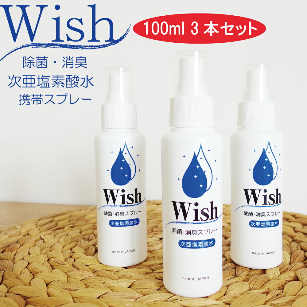 【 即納 】日本製 除菌 消臭 次亜塩素酸水 ハンド スプレー 3本セット WISH ウイルス 除菌スプレー 携帯用スプレー 100ml (50Ppm)3本セット 送料無料
